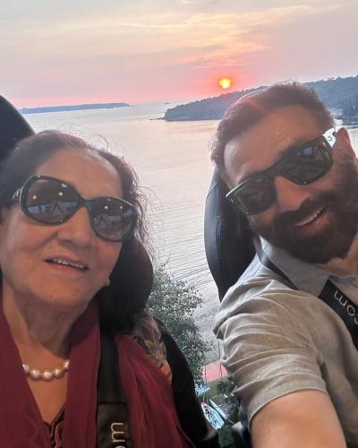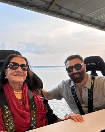 इस तस्वीर में सनी देओल अपनी मां के साथ सेल्फी लेते हुए नजर आ रहे है और जिसमें बैकग्राउंड पर सनसेट का खूबसूरत व्यू नजर आ रहा हैं। (फोटो: इंस्टाग्राम)