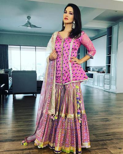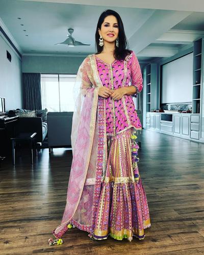 सनी लियोन तस्वीरों में पिंक कलर के शरारा सूट में दिखाई दे रही हैं। (फोटो: इंस्टाग्राम)