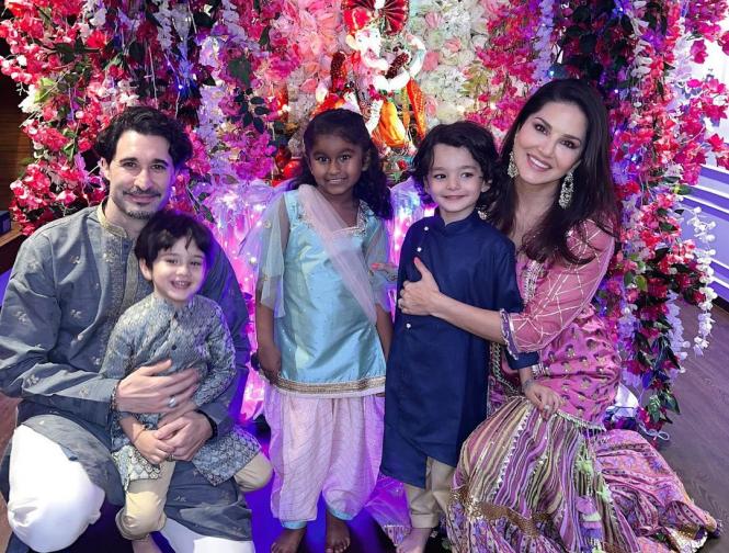 सनी लियोन ने परिवार के साथ मनाई गणेश चतुर्थी, सोशल मीडिया पर शेयर की तस्वीरें