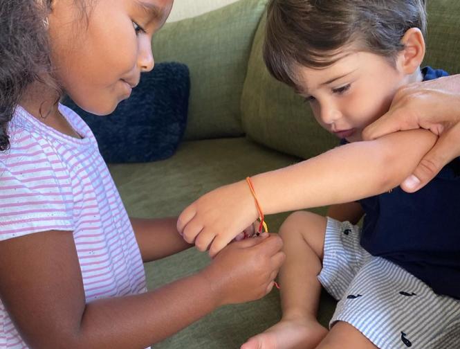 इन तस्वीरों में सनी लियोन की बेटी निशा अपने भाइयों को राखी बांधती नजर आ रही हैं। (फोटो: इंस्टाग्राम)