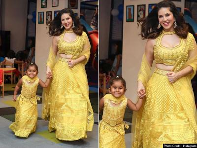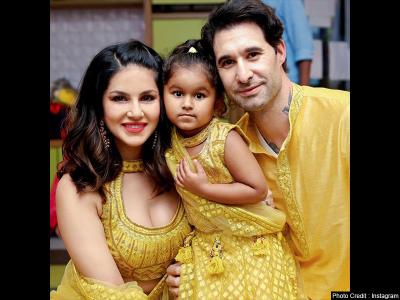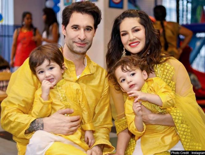 दिवाली पर सनी लियोन के साथ उनके पति और बच्चे सभी येलो कलर के आउटफिट में ही दिखाई दिए।