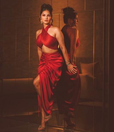 रेड ड्रेस में सनी लियोनी इस फोटो में बेहद ग्लैमरस अंदाज में नजर आ रही हैं। (फोटो- इंस्टाग्राम)
