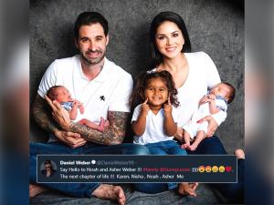 1 / 7बॉलीवुड की हॉट अभिनेत्री सनी लियोन एक बार फिर से मां बन गई हैं, लेकिन इस बार वह दो बेटे की मां बनी हैं।2 / 7सनी ने इस बात की जानकारी सोशल मीडिया के जरिए अपने फैंस को दी है।3 / 7साथ ही सनी ने इन दोनों की तस्वीर भी साझा की है। साथ ही इस फोटो में उनकी गोद ली हुई बेटी निशा कौर वेबर भी नजर आ रही है।4 / 7सनी ने अपने इन बेटों के नाम अशर सिंह वेबर और नोहा सिंह वेबर रखा रखा है।5 / 7उन्होंने अपनी पोस्ट में लिखा है कि इतना खूबसूरत और बड़ा परिवार पाकर मैं और मेरे पति डेनियल बेहद खुश हैं।6 / 7सनी ने लिखा है कि हमारे बेटे कुछ हफ्ते पहले ही हुए हैं लेकिन हमारे दिल और आंखों में वे बहुत साल से जी रहे थे।7 / 7सनी लियोनी की शादी साल 2011 में डेनियल वेबर से हुई थी।