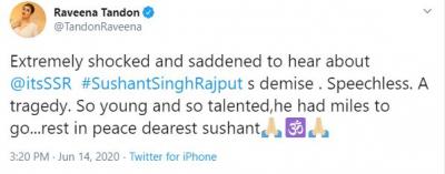 सुशांत के निधन से निराश हैं बॉलीवुड एक्ट्रेस रवीना टंडन। (फोटो सोर्स- ट्विटर)