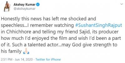 बॉलीवुड एक्टर अक्षय कुमार भी सुशांत के निधन से सदमे में हैं। (फोटो सोर्स- ट्विटर)