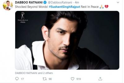 सेलेब्रिटी फोटोग्रफेर डब्बू रत्नानी ने सुशांत के निधन पर शोक व्यक्त किया। (फोटो सोर्स- ट्विटर)