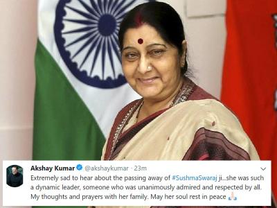 अक्षय कुमार ने भी सुषमा स्वराज के निधन पर शोक जताया है।