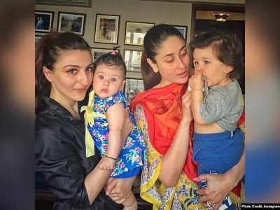 तैमूर और इनाया के अलावा उनकी मम्मियों की तस्वीर भी आई है। यहां करीने को 'नो मेकअप' लुक में देखा जा सकता है।
