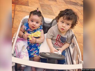 बहन इनाया को सैर पर लेकर निकले तैमूर, मम्मी करीना बिना मेकअप के दिखीं
