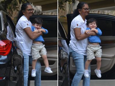पापा सैफ अली खान की तरह एक्शन में दिखे तैमूर, नैनी के साथ पहुंचे प्ले स्कूल, देखें तस्वीरें