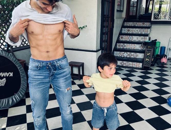बड़े भाई इब्राहिम संग एब्स फ्लॉन्ट करते दिखे तैमूर, मां करीना कपूर ने शेयर की फोटो