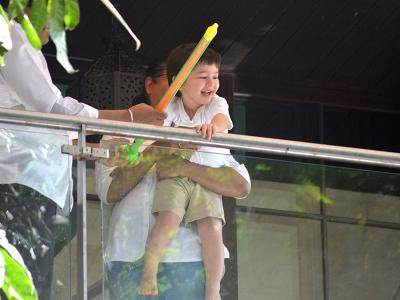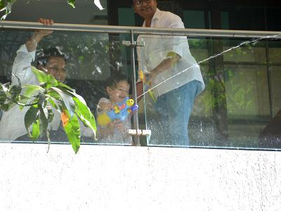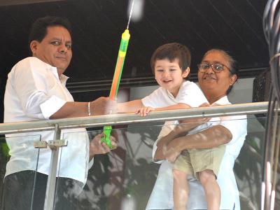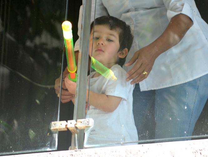 तैमूर अपने घर की बालकनी में होली मनाते दिखे