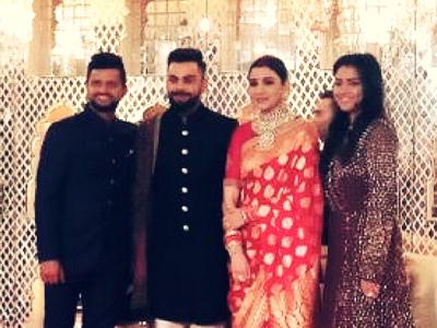 स्टेज पर विरुष्का के साथ सुरेश रैना और उनकी पत्नी प्रियंका