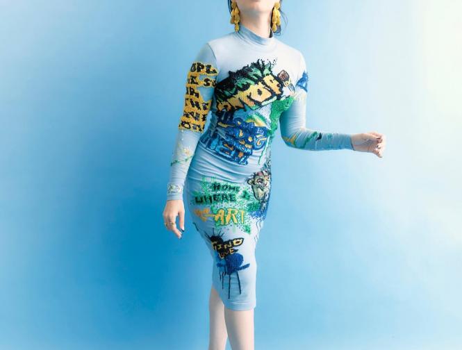 इन तस्वीरों में तमन्ना भाटिया ब्लू कलर की ड्रेस पहनी हुई है, जिसमे आगे और पीछे दोनों तरफ कलरफुल कढ़ाई वाले ग्राफिक्स बने हुए हैं। (फोटो: इंस्टाग्राम)