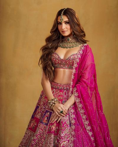 इन तस्वीरों में तारा सुतारिया पिंक कलर के लहंगे नजर आ रही हैं। इस लुक में एक्ट्रेस बेहद ग्लैमरस लग रही हैं। (फोटो: इंस्टाग्राम)