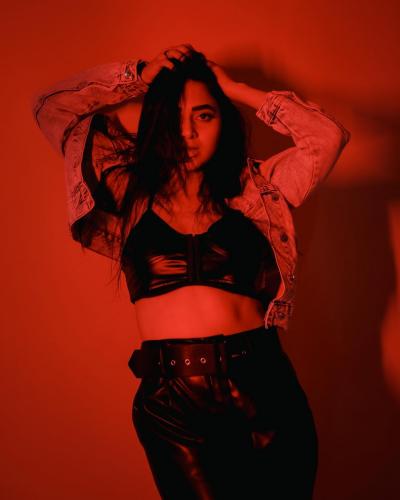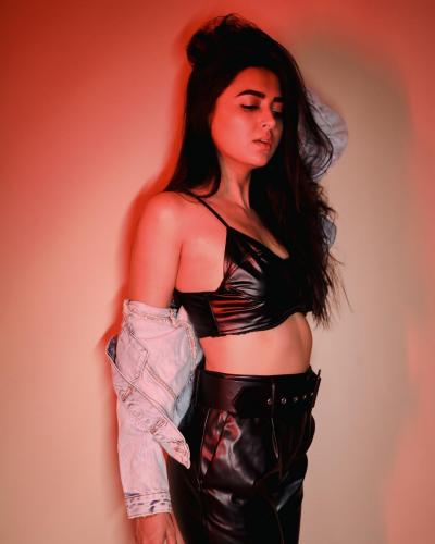 फोटोशूट में तेजस्वी प्रकाश ब्लैक लेदर ड्रेस और ब्रा में ग्लैमरस पोज देती नजर आ रही हैं। (फोटो इंस्टाग्राम)