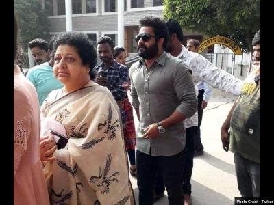 जूनियर एनटीआर भी लाइन में लगकर यहां अपना मत का प्रयोग करते नजर आए