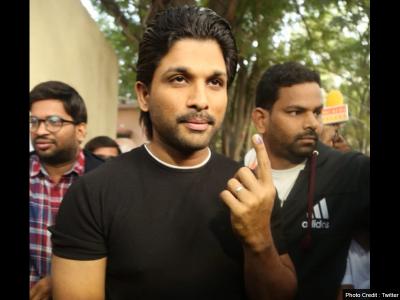 साउथ के सुपरस्टार अल्लू अर्जुन भी अपने मत का प्रयोग करने पोलिंग स्टेशन पहुंचे।