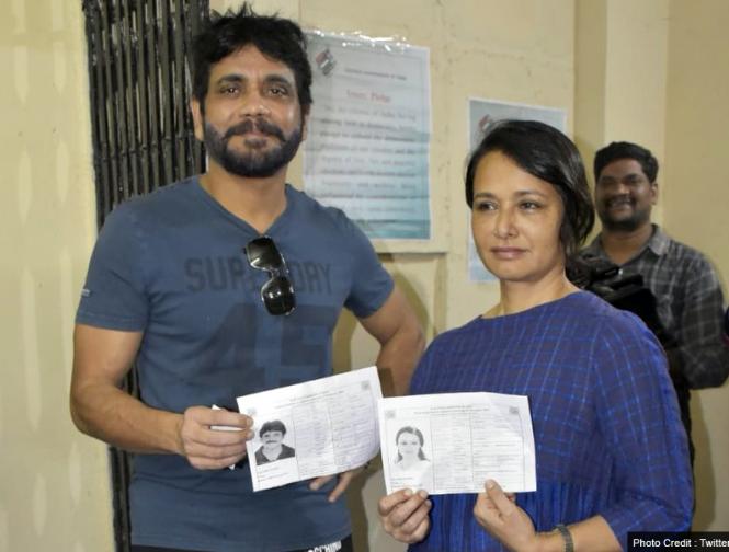 नागार्जुन यहां अपनी पत्नी के साथ वोट डालने पहुंचे थे