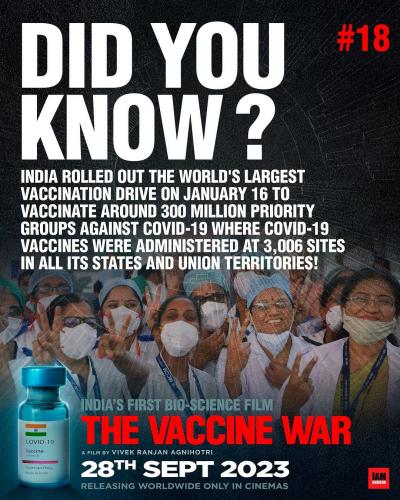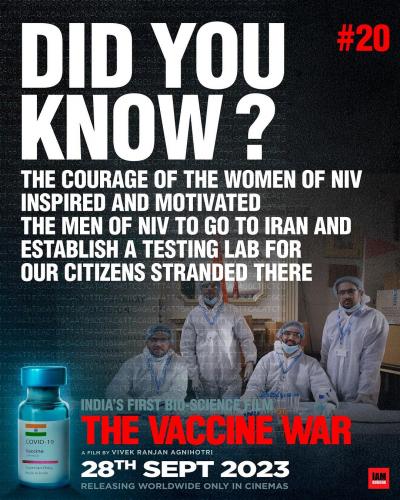 उन्होंने पोस्ट किया, ''पेश है: भारत की पहली बायो-साइंस फिल्म ‘द वैक्सीन वॉर’ का पोस्टर। यह फिल्म दुनियाभर में 28 सितंबर, 2023 को रिलीज होगी।’’