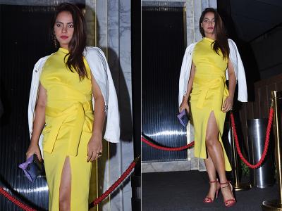 नीतू चंद्रा यलो कलर की ड्रेस में नजर आईं