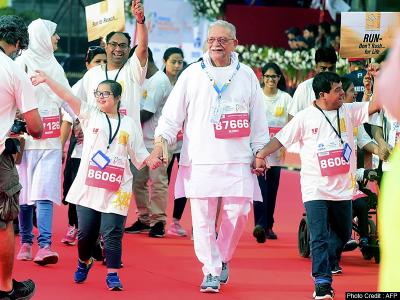 टाटा मैराथन 2020 में गुलजार भी बच्चों के साथ नजर आए।