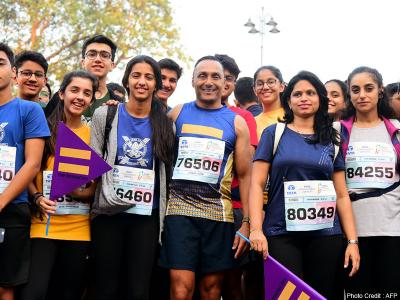 टाटा मैराथन 2020 में मॉडल और एक्टर मिलिंद सोमन, उनकी पत्नी अंकिता कोंवर भी नजर आए।