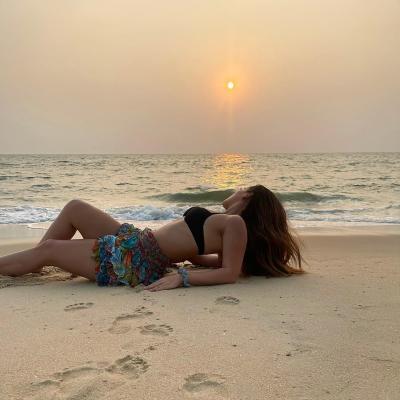 कृष्णा श्रॉफ सनसेट को एन्जॉय करते हुए अपने परफेक्ट फिगर को फ्लॉन्ट करते हुए अलग-अलग पोज देती नजर आ रही हैं। (फोटो: इंस्टाग्राम)