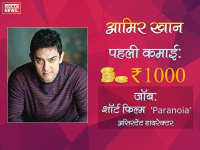 आमिर खान- पहली कमाई: 1000 रुपये, जॉब: शोर्ट फिल्म 'Paranoia'(1983) के असिटेंट डायरेक्टर रहे हैं।