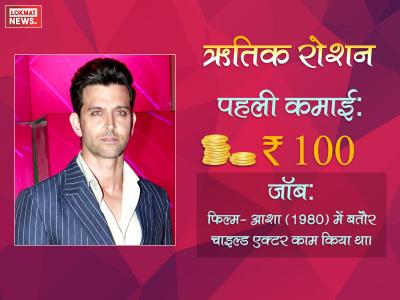 ऋतिक रोशन- पहली कमाई: 100 रुपये, जॉब: फिल्म- आशा(1980) में बतौर चाइल्ड एक्टर काम किया था।