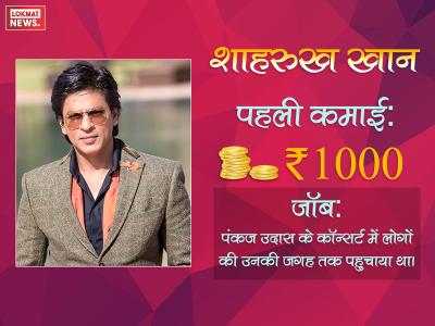 शाहरुख खान- पहली कमाई: 50 रुपये, जॉब: पंकज उदास के कॉन्सर्ट में लोगों की उनकी जगह तक पहुचाया था।