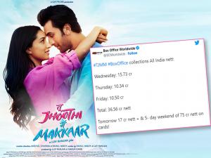 1 / 5रणबीर कपूर और श्रद्धा कपूर की फिल्म तू झूठी मैं मक्कार सिनेमाघरों में रिलीज हो गई है। (फोटो- इंस्टाग्राम)2 / 5फिल्म 'तू झूठी मैं मक्कार' को दर्शकों का अच्छा रिस्पॉन्स मिल रहा है। (फोटो- इंस्टाग्राम)3 / 5फिल्म कलेक्शन की बात करें तो फिल्म ने तीसरे दिन 10.50 करोड़ की कमाई की है। (फोटो- इंस्टाग्राम)4 / 5बॉक्स ऑफिस वर्ल्डवाइड के मुताबिक फिल्म की तीन दिन की कुल कमाई 36.56 करोड़ है। (फोटो- इंस्टाग्राम)5 / 5रणबीर कपूर इससे पहले फिल्म ब्रह्मास्त्र में आलिया भट्ट संग नजर आए थे। (फोटो- इंस्टाग्राम)