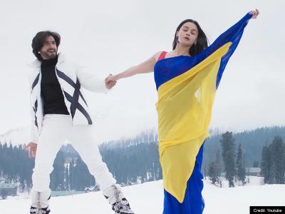 रणवीर सिंह और आलिया भट्ट गाने में बर्फ के पहाड़ों के बीच रोमांटिक गाने गाते नजर आ रहे हैं।