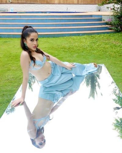 उर्फी जावेद ने ब्लू रिवीलिंग ब्रालेट टॉप में शेयर की तस्वीरें, शीशे पर बैठकर कराया फोटोशूट