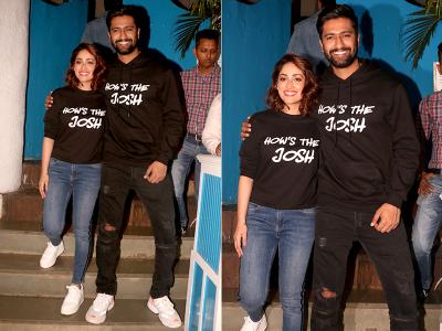 विक्की कौशल, यामी गौतम, मोहित रैना की फिल्म 'उरी: द सर्जिकल स्ट्राइक' की बॉक्स ऑफिस पर शानदार कमाई देखने के बाद मुंबई में इस फिल्म की सक्सेस पार्टी रखी गई, इस दौरान विक्की कौशल, यामी गौतम, मोहित रैना 'How’s The Josh' की स्वेटशर्ट पहने हुए बेहद जोश भरे अंदाज में नजर आए।