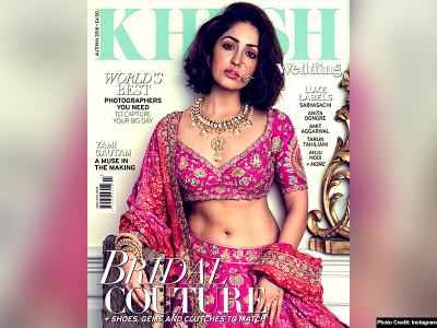 कवर पर छाईं यामी गौतम ने पिंक कलर का लंहगा पहना हुआ है और साथ में यामी ने इस लंहगे के साथ काफी स्टाइलिश ज्वैलरी पहनी हुई है।
