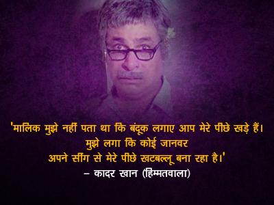 'मालिक मुझे नहीं पता था कि बंदूक लगाए आप मेरे पीछे खड़े हैं। मुझे लगा, मुझे लगा कि कोई जानवर अपने सींग से मेरे पीछे खटबल्लू बना रहा है।' - कादर खान (हिम्मतवाला)