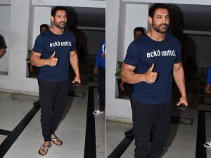 1 / 8बॉलीवुड एक्टर जॉन अब्राहम फिल्म 'रॉ' की सक्सेस के बाद अब अपनी आने वाली फिल्मों की शूटिंग को लेकर काफी व्यस्त चल रहे हैं।2 / 8इसी बीच जॉन हाल ही में मशहूर फिल्म मेकर करण जौहर से आने वाली फिल्म के सिलसिले में उनके घर पर मुलाकात की।3 / 8जॉन इस दौरान ब्लू टी शर्ट के साथ ब्लैक ट्राउजर और स्लीपर में नजर आए।4 / 8जॉन इन दिनों अपनी अपकमिंग फिल्म 'बटला हाउस' की शूटिंग में बिजी हैं।5 / 8इस फिल्म में जॉन के साथ मृणाल ठाकुर लीड रोल में नजर आएंगी।6 / 8यह फिल्म इस साल 15 अगस्त के दिन रिलीज़ की जाएगी।7 / 8जॉन की हालिया रिलीज़ हुई फिल्म 'रॉ' में उनके साथ मौनी रॉय अहम किरदार में नजर आईं थी।8 / 8फिल्म 'बटला हाउस' के अलावा जॉन जल्द ही 'पागलपंती' और 'वेलकम टू द जंगल' में दिखेंगे।