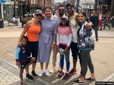 स्टार कपल इंग्लैंड की गलियों में स्टार ओपनर शिखर धवन और उनके परिवार के साथ घूमता नजर आया।