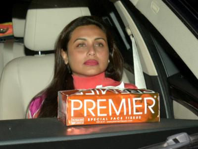 एक्ट्रेस रानी मुखर्जी फिल्म की स्क्रीनिंग में पहुचीं उन्होंने पिंक ऑरेंज कलर की ड्रेस पहनी हुई थी।