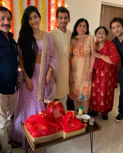 युजवेंद्र चहल ने फोटो शेयर करते हुए लिखा- "हम लोगों ने हां कहा, अपने परिवार वालों के बीच...।" पेशे से कोरियोग्राफर और डॉक्टर धनश्री वर्मा के साथ युजवेंद्र चहल जूम वर्कशॉप्स में नजर आ चुके हैं।