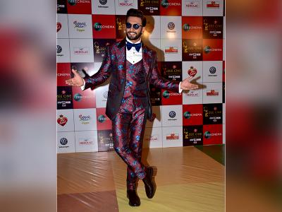 रणवीर सिंह का यह प्रिटेंड सूट काफी स्टाइलिश लग रहा था।