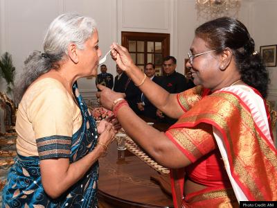 Interim Union Budget 2024: बजट से पहले राष्ट्रपति द्रौपदी मुर्मू ने वित्त मंत्री सीतारमण को खीर खिलाईं, देखें तस्वीरें