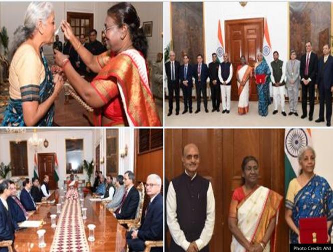 बजट पेश करने से पहले राष्ट्रपति मुर्मू से मिलीं वित्त मंत्री सीतारमण।