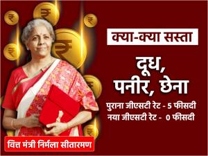 1 / 9वित्त मंत्री निर्मला सीतामरमण समेत अधिकारियों की जीएसटी परिषद की बैठक के बाद नई जीएसटी दरों की घोषणा की गई है। 2 / 9अब, मौजूदा चार-स्तरीय संरचना (5%, 12%, 18% और 28%) को दो मुख्य स्लैबों, 5% और 18%, में बदल दिया गया है।3 / 9इसके अलावा, एक नया 40% का स्लैब भी बनाया गया है, जिसे विशेष रूप से कुछ चुनिंदा 'लग्जरी' और 'हानिकारक' (sin) वस्तुओं पर लागू किया जाएगा। ये नई दरें 22 सितंबर, 2025 से प्रभावी होंगी।4 / 9हालांकि, अब सवाल उठता है कि इसका असर आप पर कैसे होगा और क्या रोजाना की जरूरत का सामान लेना महंगा हो जाएगा?5 / 9कई खाद्य पदार्थ अब सस्ते हो गए हैं। दूध, पनीर, रोटी, पराठे और पिज्जा ब्रेड को जीएसटी से पूरी तरह छूट दी गई है।6 / 9मक्खन, घी, जैम, सॉस, सूप, पास्ता, नमकीन और मिठाइयों पर अब 5% कर लगेगा, जो पहले 12-18% था। बादाम, काजू और पिस्ता जैसे सूखे मेवों पर भी 5% कर लगेगा।7 / 9किराने के सामान पर 8,000-10,000 रुपये खर्च करने वाले परिवार के लिए, इसका मतलब हर महीने कुछ सौ रुपये की बचत हो सकती है, जो इस बात पर निर्भर करता है कि पैकेज्ड और प्रोसेस्ड फ़ूड कितना खरीदा जाता है।8 / 9यह राहत के सबसे बड़े क्षेत्रों में से एक है। कैंसर और दुर्लभ बीमारियों के इलाज सहित 33 जीवन रक्षक दवाएं अब जीएसटी-मुक्त हैं। 9 / 9अधिकांश अन्य दवाएं, डायग्नोस्टिक किट, थर्मामीटर और चिकित्सा उपकरण 12-18% से घटकर 5% के दायरे में आ गए हैं। महत्वपूर्ण बात यह है कि जीवन और स्वास्थ्य बीमा प्रीमियम को पूरी तरह से जीएसटी से मुक्त कर दिया गया है।