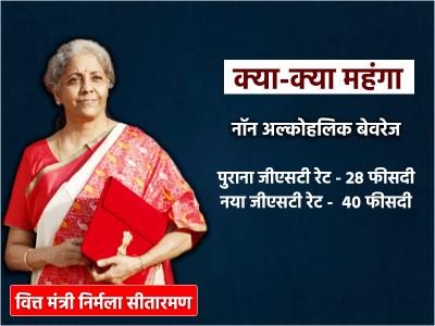 ये हैं वे वस्तुएँ जिन पर अब 40 प्रतिशत जीएसटी लगेगा, पान मसाला, सिगरेट और गुटखा, चबाने वाला तंबाकू और ज़र्दा, मीठे और कार्बोनेटेड पेय, लग्ज़री कारें, निजी विमान, फ़ास्ट फ़ूड