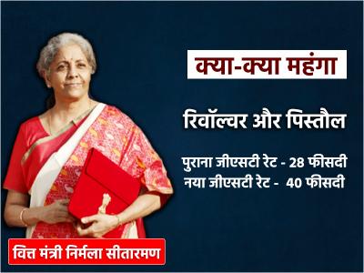 रिवॉल्वर और पिस्तौल जैसे हथियारों पर 40 फीसदी टैक्स।