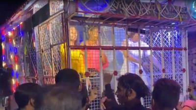 बारात में कुछ डांसर्स ने पिंजरे में डांस किया। वहीं बाराती पिंजरे के बाहर नाचने में मशगूल नजर आ रहे हैं।