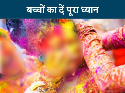 बच्चों की स्किन भी नाजुक होती है। ऐसे में बच्चों को होली के हानिकारक रंगों से बचाना जरूरी है। बच्चों को हमेशा प्राकृतिक रंग दें। साथ ही कोशिश करें कि बच्चा भीगे नहीं। इससे उनकी तबियत भी बिगड़ रही है। बच्चों को ईको फ्रेंडली होली के बारे में समझाइए। बच्चों को बताइए जिससे कि वे केमिकल रंग से दूर रहें और ज्यादा हुड़दंग न करें।