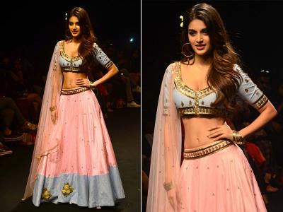 डिजाइनर सोलका सुधाकर की शो स्टॉपर बनी निधि अग्रवाल लाइट पिंक लहंगे में खूबसूरत नजर आईं।